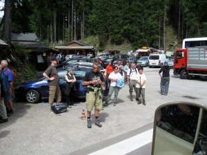 machen aber auch um entgegenkommende Teilnehmer der Oldtimer-Ralley zu