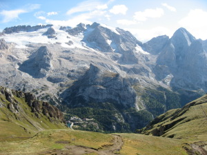 vom Passo di Fedaia (2047 müM) ostwärts. Beim Glasentsorgen im nächsten